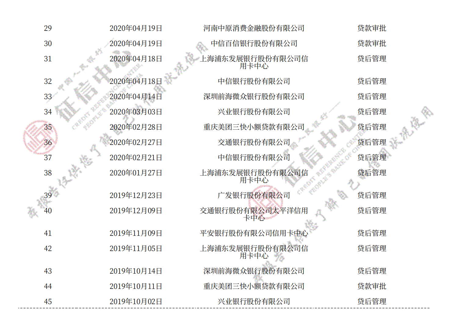 人民银行详细版征信记录,包括网贷、房贷、车贷、信用卡等